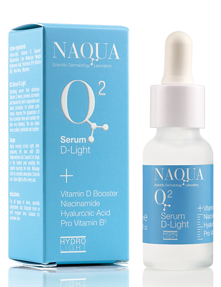 El Serum Concentrado Vitamina D – D-Light de Naqua potencia la síntesis natural de vitamina D para mejorar la luminosidad, oxigenación y vitalidad de la piel.